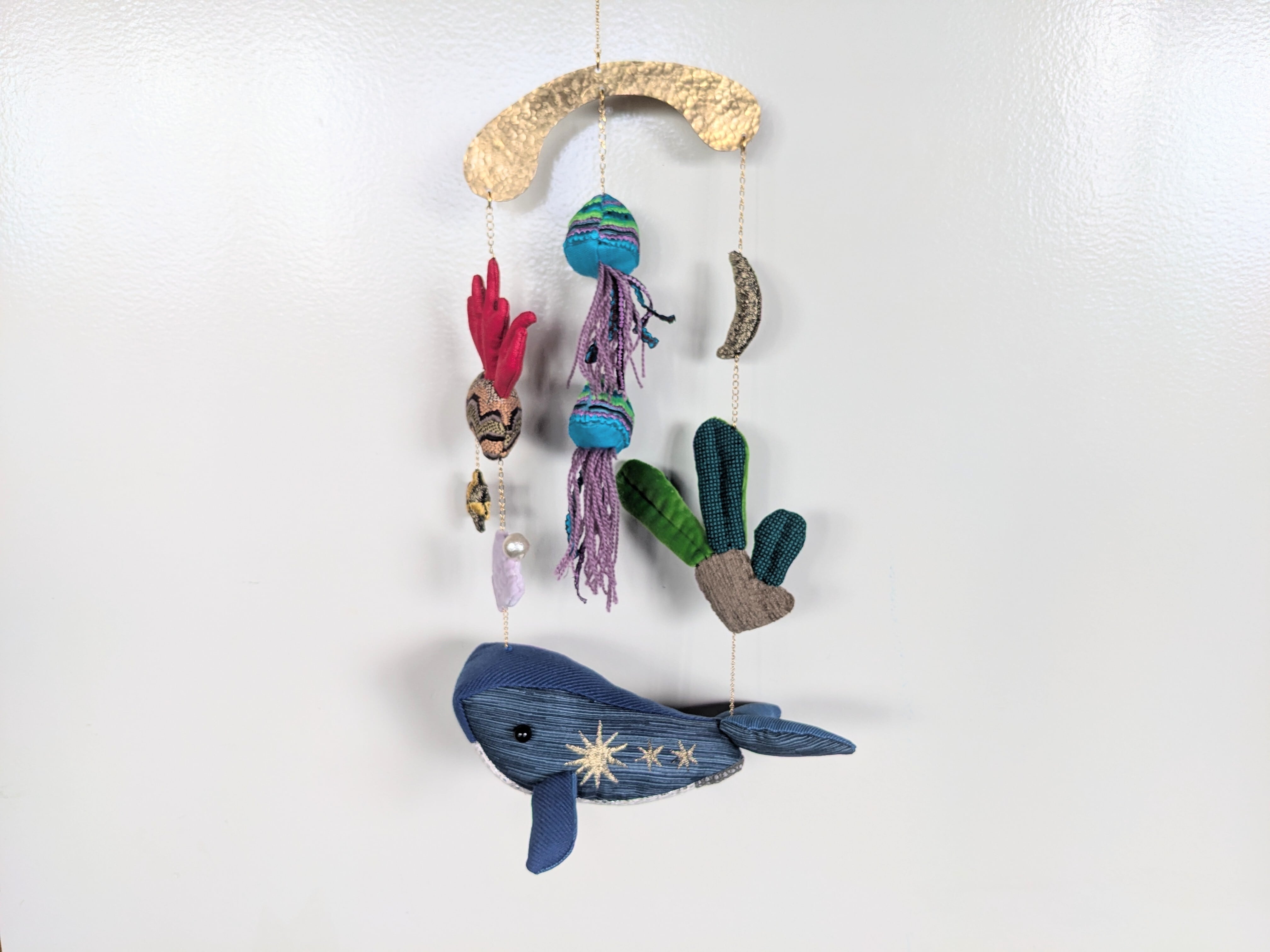 クジラの頭上にワカメの岩やら珊瑚礁がみえ